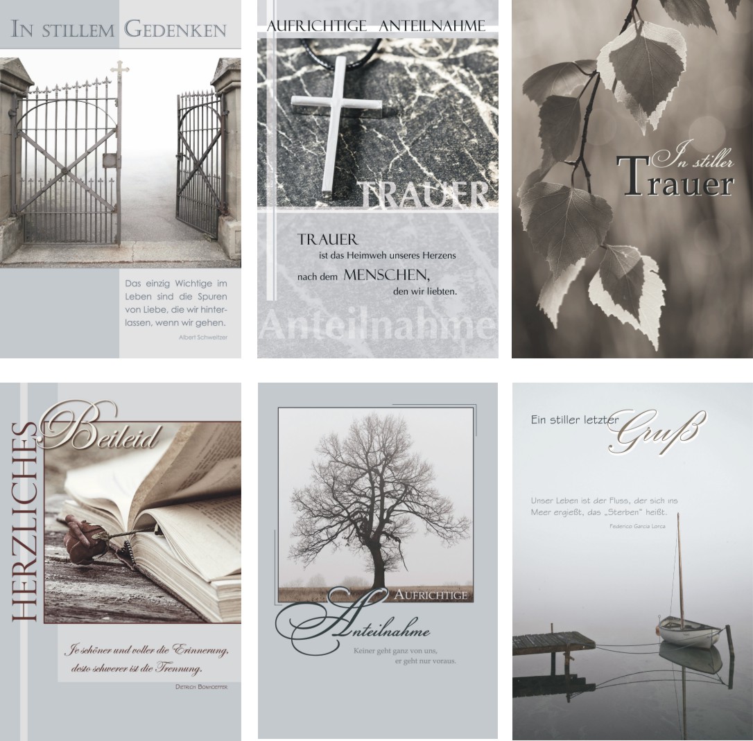 Karten sind aufklappbar, mit Umschlag und in Folie verpackt.